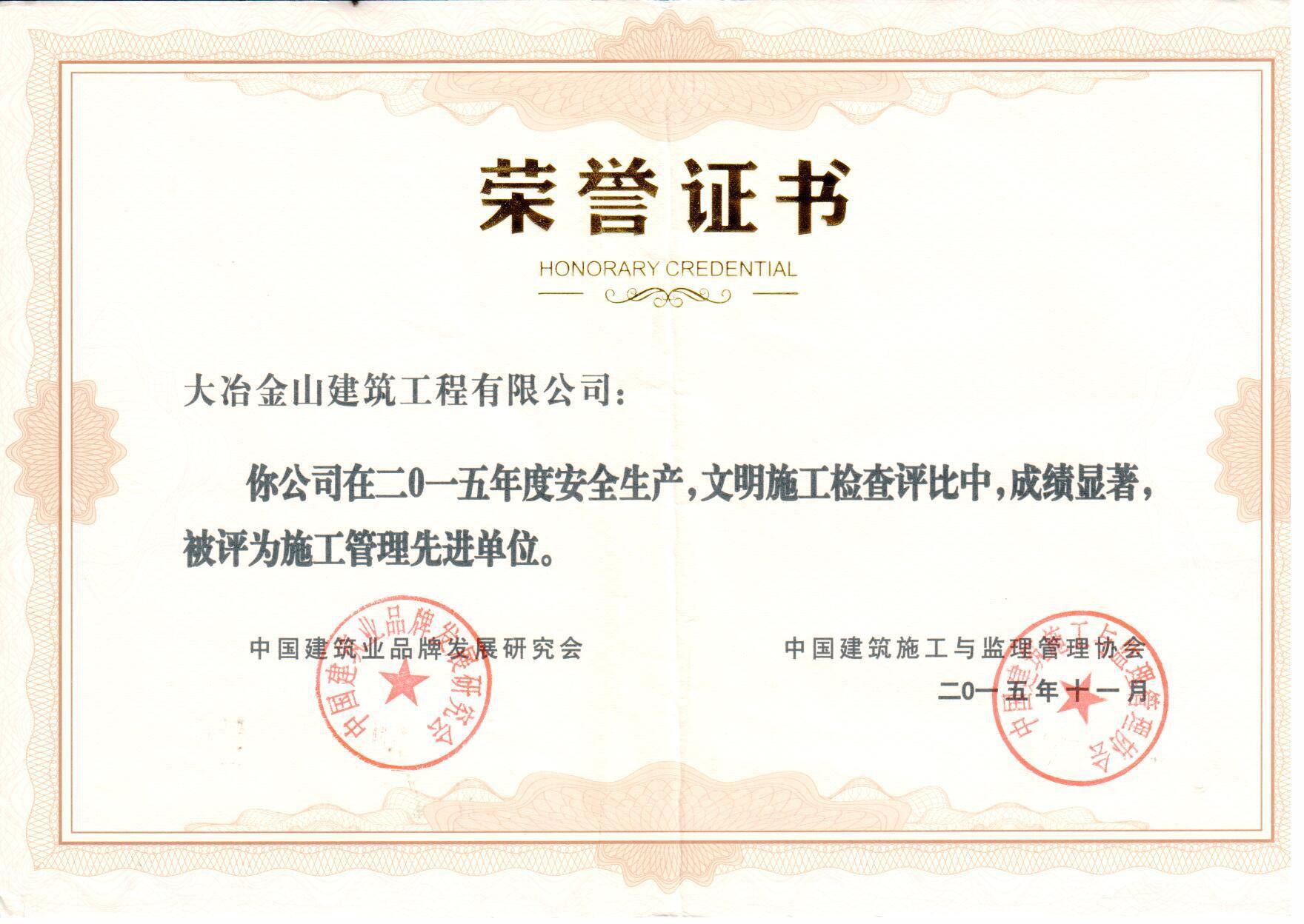 在建筑市場激烈競爭中,公司以雄厚的資金,精湛的技術,堅持以“誠信立業,經營富業,人才興業,創新強業”的發展理念,以“質量第一,鑄精品工程;用戶至上,樹金山品牌”的宗旨,本著“做一處工程,交一方朋友;建一個項目,樹一座豐碑”的目標,發揚“干部有朝氣,職工有志氣,隊伍有士氣,公司有名氣”的團隊精神,從而實現了公司“質量一流,信譽一流,效益一流”的良性循環。